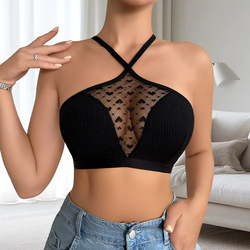 Gilet da donna Sexy semitrasparente con maglia Dobby e spalline incrociate Spandex/Nylon traspirante biancheria intima taglie M/L