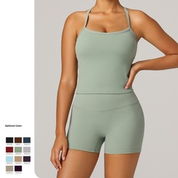 Nhà Sản Xuất Phụ Nữ Của Phòng Tập Thể Dục Tập Thể Dục Hàng Đầu Và Quần Short Thiết Lập Với Cốc Có Thể Tháo Rời Và Eo Đàn Hồi Rắn Mô Hình Activewear